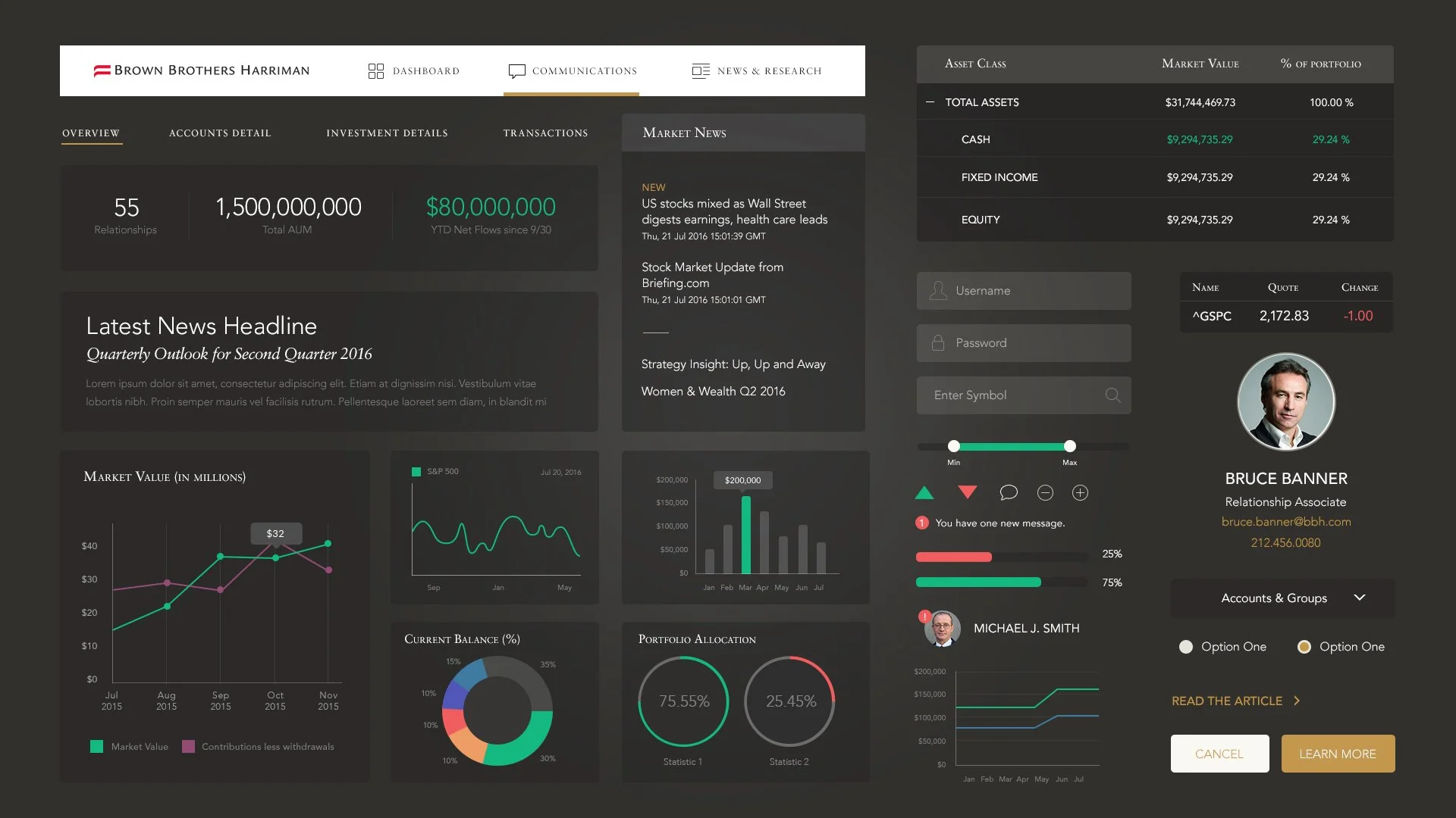 We built a secure, investor-centric platform powered by modular design systems and atomic principles, enabling tailored visualizations, intuitive navigation, and seamless advisor–client interactions—all while preserving BBH’s legacy of trust and discretion.